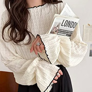 【SC0569】鏤空拼色木耳邊糖果袖衫.米M(現+預)B
