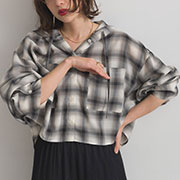 【SC0578】微透格紋連帽短版襯衫.米色 (現+預)