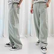 【SB8359】韓製腰鬆緊口袋直紋涼感褲.黑色(現貨)