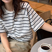 【SB9896】細橫條薄長袖衫.黑米 (現貨)