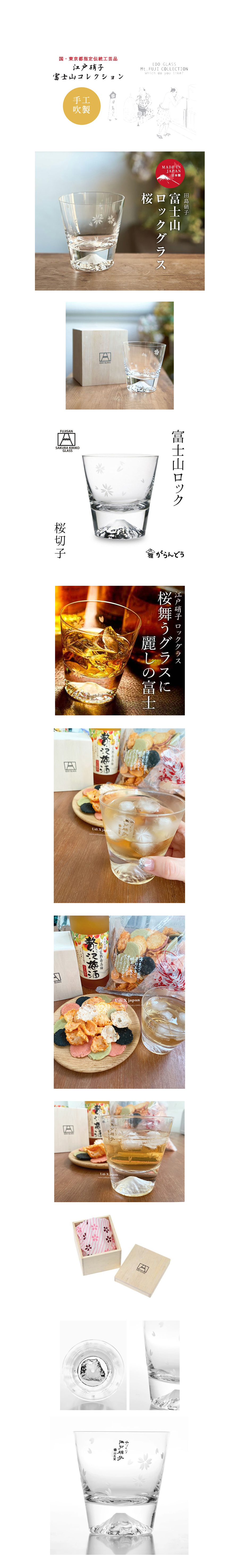- 職人手工吹製 - \ 日本職人手工櫻花富士山玻璃杯 / 【會隨注入飲料變色的富士山杯】 富士山杯是透過終年1350℃的高溫窯, 炎熱的環境下由硝子職人一個一個手工吹製, 將富士山頂砂雕研磨而成。 玻璃的厚度全依賴職人的純熟技巧, 一天只能製造300個的Made in Tokyo超夢幻逸品。 倒入飲料後會隨著光折射,將顏色映在杯底的富士山。 杯上貼紙寫著「手作.江戶硝子.田島窯」, 不論是酒品、飲品或是冰品都可隨興搭配使用。 並附有高質感的桐木禮盒裝。 手工吹製個個為獨一無二, 多少可能會有手作專屬的小氣泡, 若出現在杯底則有如富士山飄雪, 別有趣味。 【關於田島硝子】 田島硝子(田島窯)創立於1956年日本東京, 60多年來,致力於發展玻璃工藝。 其深厚的職人精神, 以長年養成的開發力及技術為基, 持續創造手作玻璃的魅力, 望遠百年, 為未來的江戶硝子貢獻發展。 *使用注意及保養 .玻璃製品需避免急冷、急熱。 .用洗碗精以柔軟海綿/布清洗。 .不可微波/烤箱/不可用洗碗機 商品規格 :富士山杯(威士忌杯)×1入 ●Made in Japan 日本製 ●手工吹製 ●材質:無鉛玻璃 ●容量:約220ml ●重量:約500g ●口徑:9.2cm × 高:9.5cm ●原廠桐木箱裝+原廠說明書 ●原廠櫻花包布 ◎ 純手工製作,吹製過程中杯體可能有極細微氣泡產生,屬正常現象