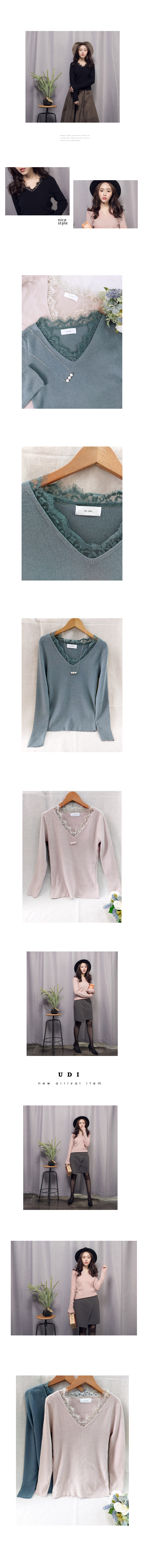 Model示範穿的尺寸為 F 韓國空運‧領蕾絲直紋針織T 尺寸為單面平放測量,單一尺寸