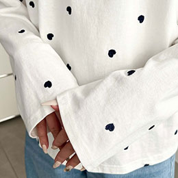 【AB8688】滿版愛心刺繡長袖天竺棉T.白色M(現貨)免運