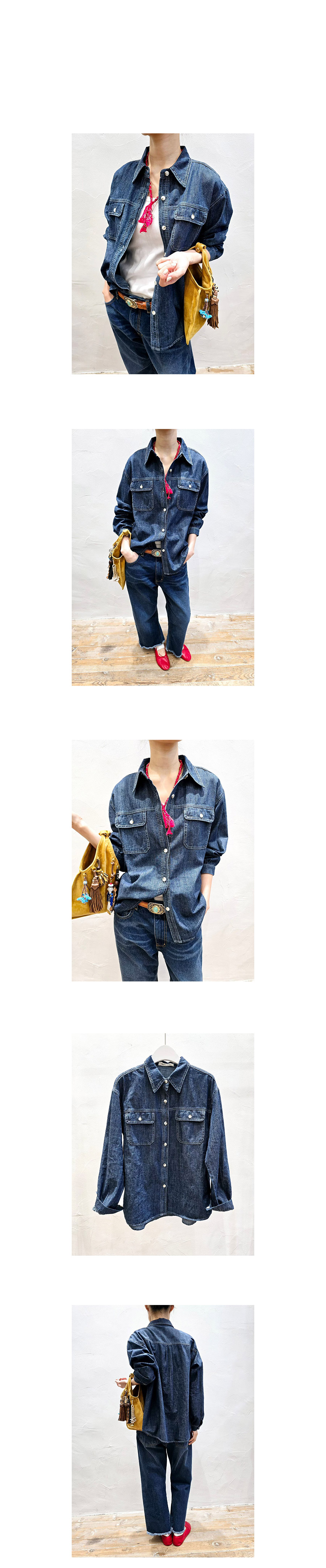 【SC0549】雙口袋圓釦水洗牛仔襯衫.藍色(現貨)