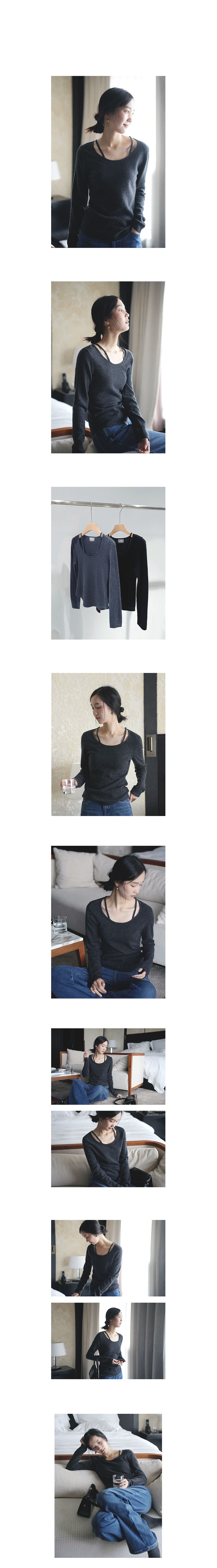 獨特的 U 領結合假兩件吊帶,打破單調,修飾肩線效果一級棒! 觸感軟糯,保暖卻不厚重,穿上就像被雲朵包裹。 修身坑條羅紋織法,彈性極佳,完美包容各種身形!