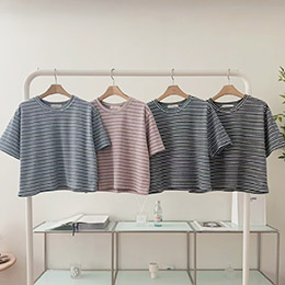 軟軟毛巾感面料真的很加分~細條紋看起來乾淨耐看 短版比例穿上很俐落,搭牛仔褲、長裙、寬褲都很好看 背後小後標是低調小亮點,簡單一件就有韓系隨性感