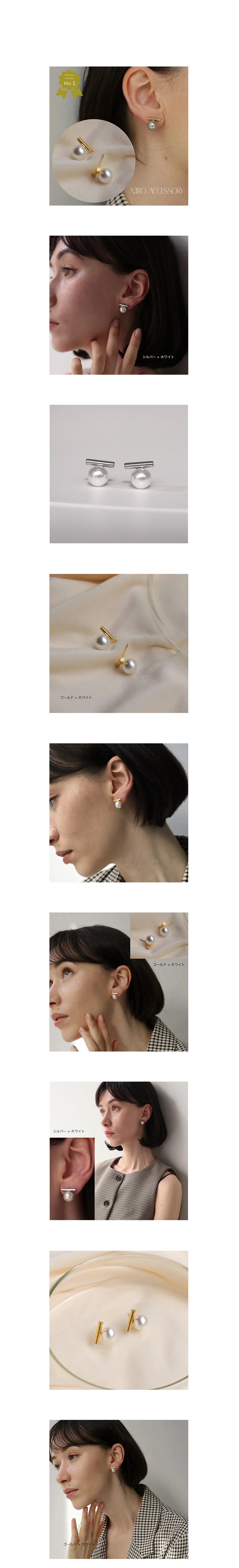 銀色、金色,共2色 珍珠直徑約9.8mm,耳針長約11.4mm
