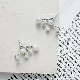 - 質感配件 - 漂浮桂枝珍珠鋯石耳飾
