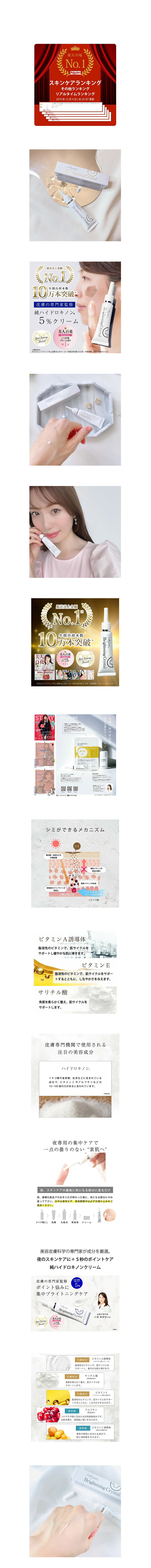 黃金複方:視黃醇 + 多種美白成分 不只有對苯二酚, 還搭配了視黃醇、熊果素、水楊酸、維他命C、E等夢幻美白陣容, 加速肌膚代謝更新,淡斑效果加乘!