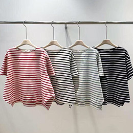 韓國空運-側寬衩橫條純棉寬版T 韓國製 韓製挺棉舒適升級 修身遮肉~單件穿下身隨意搭就很美 以極簡設計搭配寬鬆不規則剪裁打造自在無拘束的時尚風格 尺寸為單面平放測量,單一尺寸:F 不同批追加到貨商品顏色、尺寸多少都會有落差尺寸誤差2公分(針織類為5公分)為正常範圍值 本賣場採[現貨+預購] 商品追加期為下單付款後約10~25個工作天(不含假日),下單即同意等候追加日喔! 共4色:紅、藍米、灰、黑