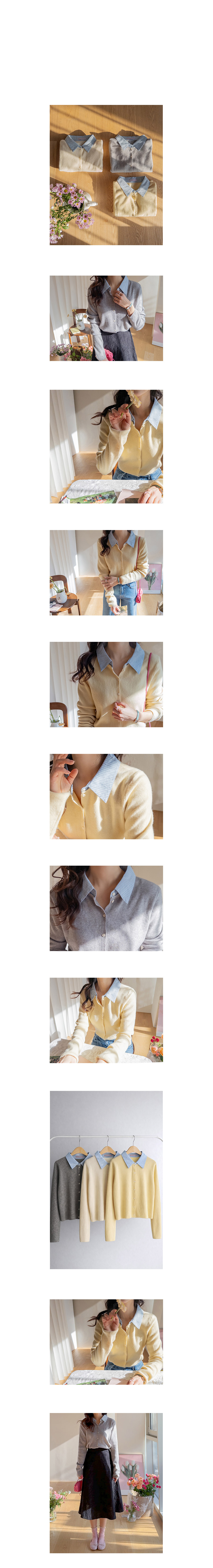 韓國空運-假兩件條紋領針織開釦衫 #2026SS #假兩件設計