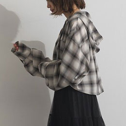 這款襯衫結合了格紋的經典與連帽的休閒感, 輕薄透氣的材質,適合當作小外套防曬,內搭小可愛就非常有層次感。 重點是那個微透的材質,隱隱約約的視覺感超級加分! 短版剪裁直接拉長腿部線條,不用紮衣服就有好比例!