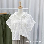 【SB9660】翻領鏤空緹花刺繡反折袖開釦衫.白色(現貨)