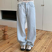 【SC0594】韓製後中切線寬管牛仔褲.淺藍 (現+預)