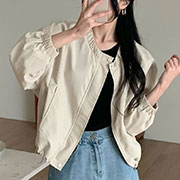 【SC0613】V領落肩拉鍊泡泡袖外套.2色 (現+預)