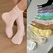 【TB9673】韓馬卡龍色系毛巾底中筒泡泡襪.4色(現貨)