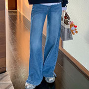【SC0568】韓製彈力側開衩牛仔寬褲.2色(現+預)